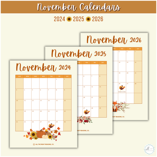 Thanksgiving and Fall All-in-One Planner Download | Printable Planner | Digital Downloads | Undated 2024-2026 | A4, A5, Letter, Classic
